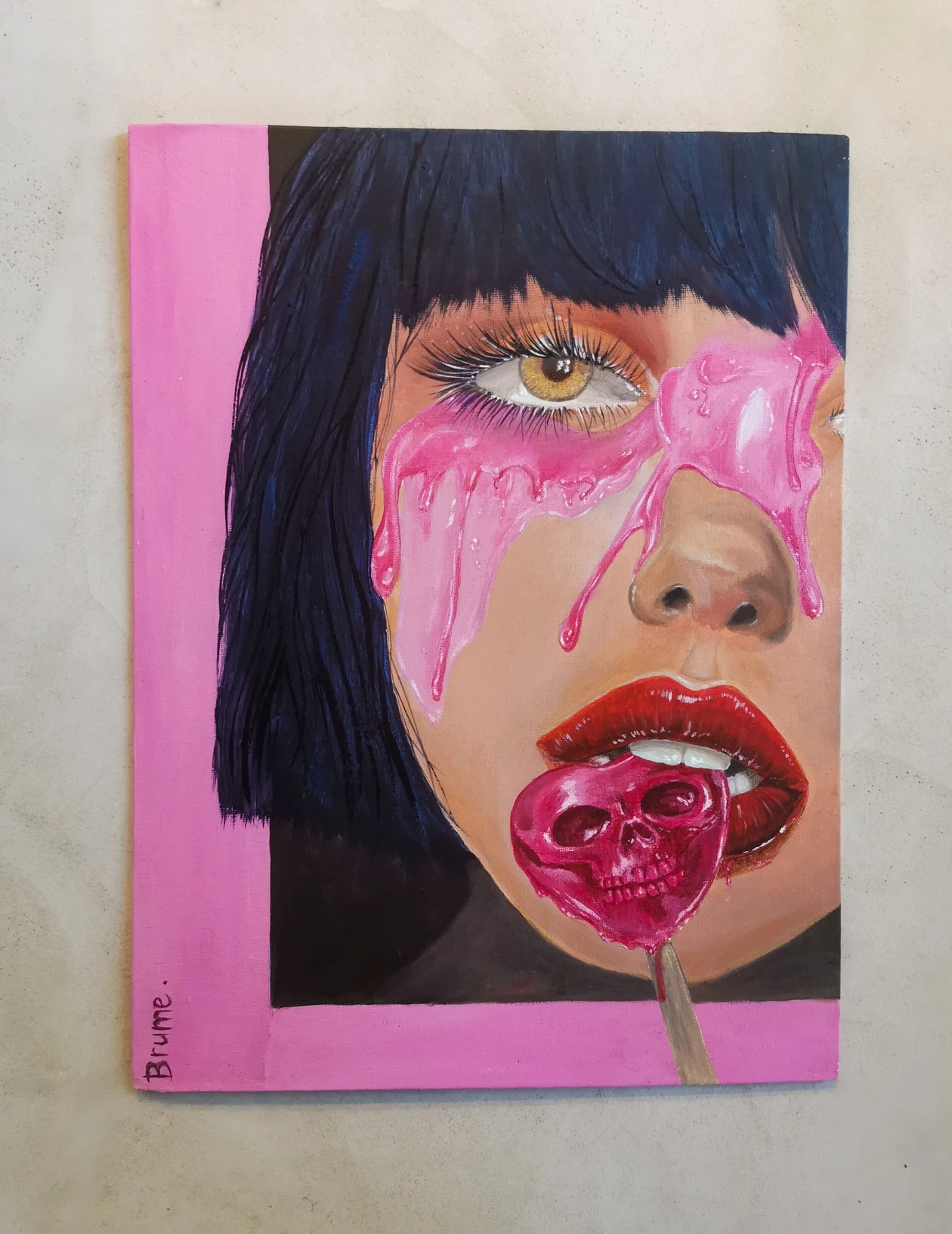 Vous voulez voir la vie en rose ? Alors, n’attendez plus et suspendez cette œuvre dans votre maison, pour ainsi croquer la mort à pleine dent !